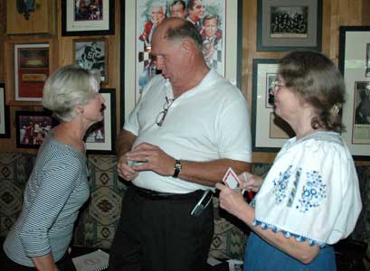 | Frank Yoder, Diana (Brogneaux) Yoder '64 & Sheri (Lindsey) Curry '64 get their nametags | |