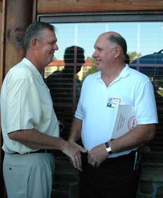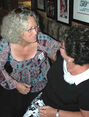| Susie (Keisler) Gray makes a nametag for Don Neal | Sheri (Shumate) Stevens-Miller & Molly (Maloney) Delevett |