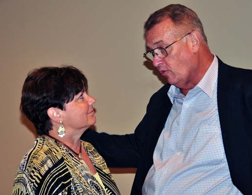 | Ed McCrea at the podium | Ted Najam reads his quiz | ||